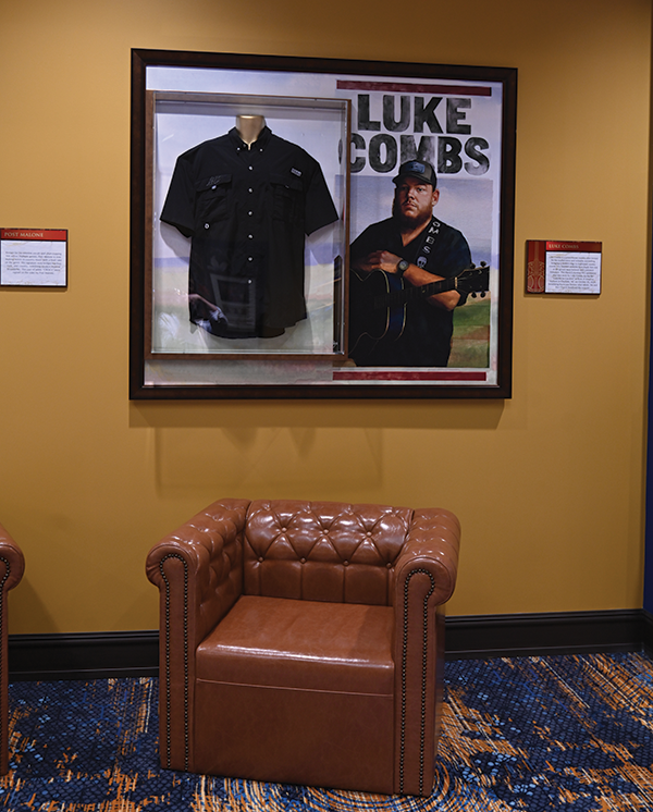 A few of the favorites in the Bristol casino include Dolly Parton’s custom Trang Phung dress (Wendy Williams Show), Johnny Cash’s “Man in Black” ensemble, Lady Gaga’s London appearance dress, Stevie Nicks’s autographed pearl-trimmed glove, Farm Aid XI guitar signed by Willie Nelson, Neil Young and John Mellencamp, Steven Tyler’s Back in the Saddle Tour outfits, Elvis Presley handwritten set list and Faith Hill’s 1960 convertible Corvette. “State Stree” is a corridor with artists from Tennessee on one side and those from Virginia on the other. The portraits are accompanied by memorabilia, such as gold records, set lists and more.