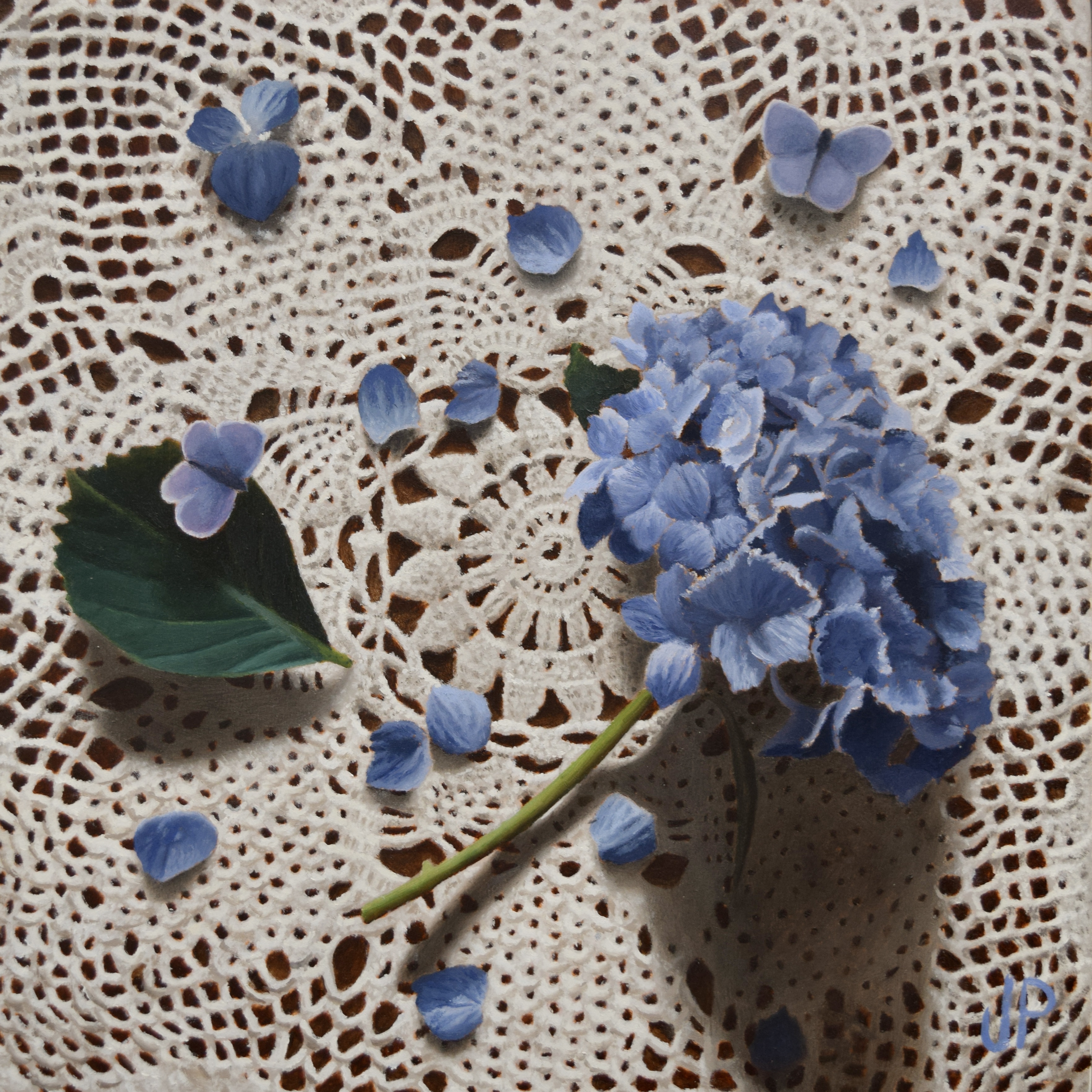“There isn’t anything about art that I’m not interested in, but I am most interested in the traditional arts, which inspire my style. I am fascinated by artists like Vermeer, Caravaggio and Sargent.I find that my style is a more minimalistic version of traditional paintings with a restricted color palette and simple compositions without compromising detail. They are often very melancholy and somber because of the color palette I try to create, which is mainly cool and neutral. There are some contemporary artists that I look up too. Artists like Ben Bauer, Edward Rice and Andrii Kateryniuk each inspire me in different ways. Of course, Cristy Dunn has been the teacher that has influenced my work the most. She has taught me everything from traditional oil technique to how to package a painting for shipping,” Jacob says.