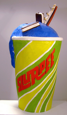 He continues, "My objects are often archetypal depictions focusing on our idealized understandings and desires of the subject, rather than their actuality. I think of my sculptures being collaged from an encyclopedia, a place where, in theory, all the information in the world is kept in a concise, ideal, and easy-to-read format. My pieces illustrate and investigate what we know and how we know it, through an exploration and celebration of cultural mythologies. Through my selection of topics, I create a sense of place and time through which the viewer may enter the work, physically and/or psychologically.
