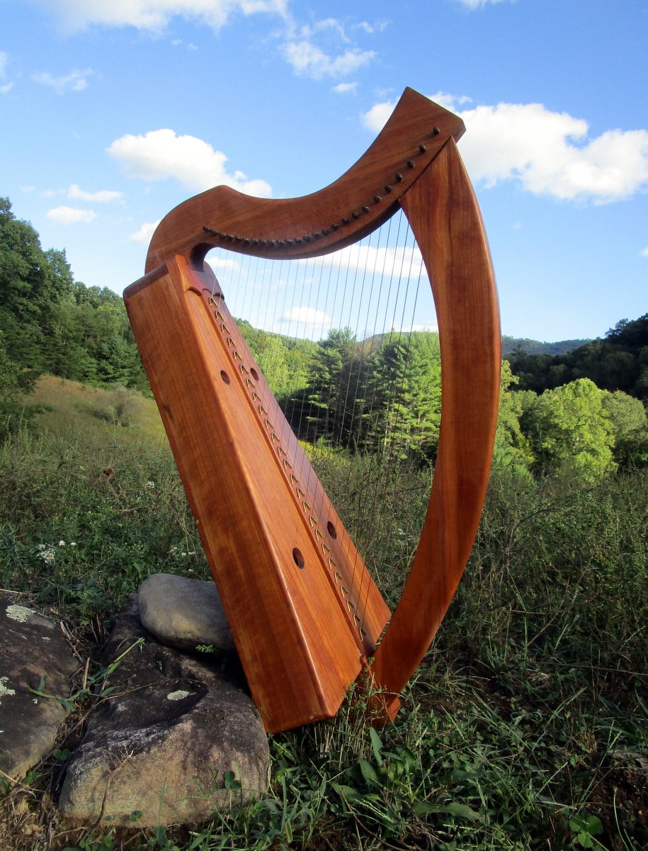 As he explains it, “In the Disney flick, ‘Darby O’Gill and The Little People,” King Brian asks Darby if he would like to play the harp. Darby replies, ‘Ah, I’m no great hand at the harp.’ So, I confess that I am a graduate of the Darby O’Gill School of Harping. That said, I have a series of demonstrations of most of the harps I’ve made on YouTube. The wire-strung harp you say? Is it hard to learn to play? Yes and no. In 20 minutes, I could have you playing a tune even if you’ve never touched even one musical instrument in your life. And after that if you live a very long life and pursue the interest with enthusiasm, you will not have begun to scratch the surface. Did I mention it’s mysterious?” Skeen says.